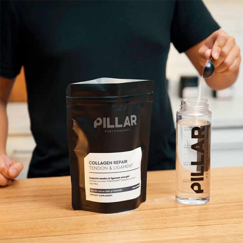 COLLAGEN REPAIR apresenta peptídeos bioativos Tendoforte® testados clinicamente que demonstraram afetar positivamente a força e a saúde dos tendões e ligamentos durante a atividade física.