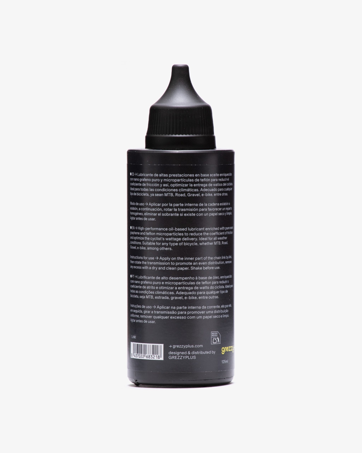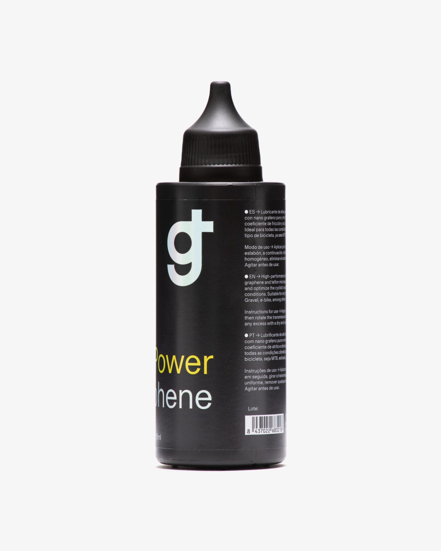 O lubrificante Oil PowerGraphene é um óleo de alto desempenho que combina óleo base, aditivos de nanografeno 100% puro, hidrocarbonetos e Teflon. Projetado para otimizar a entrega de potência do ciclista sobre a transmissão, este lubrificante cerâmico proporciona uma redução significativa no coeficiente de atrito.