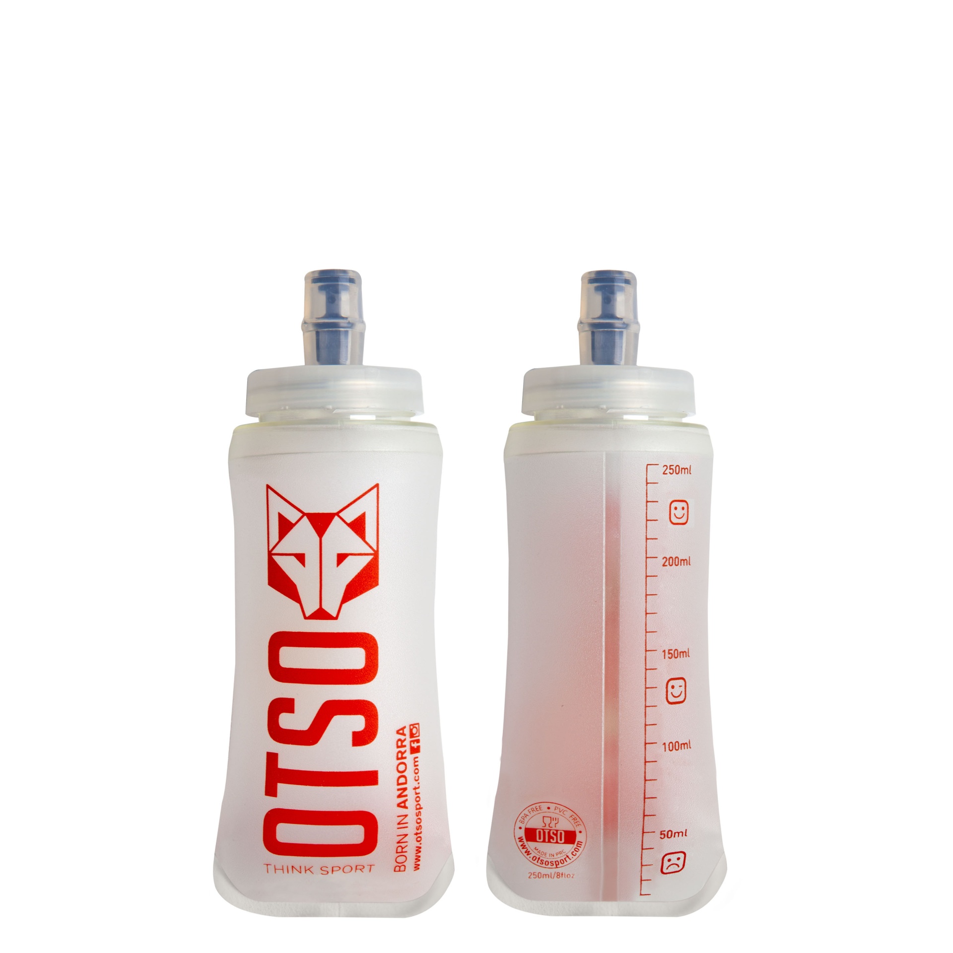 Com menos de 50gr., o Soft Flask da OTSO é dobrável e tem capacidade de até 250 ml. Cumpre todas as normas de segurança para o consumo dos líquidos depositados no seu interior. Muito fácil de usar, está equipado com uma válvula de mordida. Com uma simples sucção, é garantido um abastecimento de líquido suficiente sempre que quiser beber. Por ser dobrável, requer muito pouco espaço e, portanto, pode ser armazenado em qualquer lugar do nosso equipamento desportivo. Durável e à prova de vazamentos graças ao seu sistema de válvula. É ideal para desportos ao ar livre: trail, corrida, escalada, trekking, skimo, mountain bike, ...