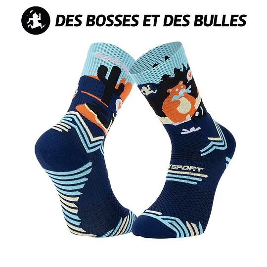 Fabricadas em França , as TRAIL ULTRA - foram projetadas exclusivamente com a Des Bosses Des Bulles . Uma colaboração que transpõe um universo divertido e original em produtos de corrida e trail.